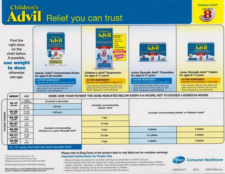 ADVIL/MOTRIN (ibuprofen) DOSING Not recommended for babies under 6 months old